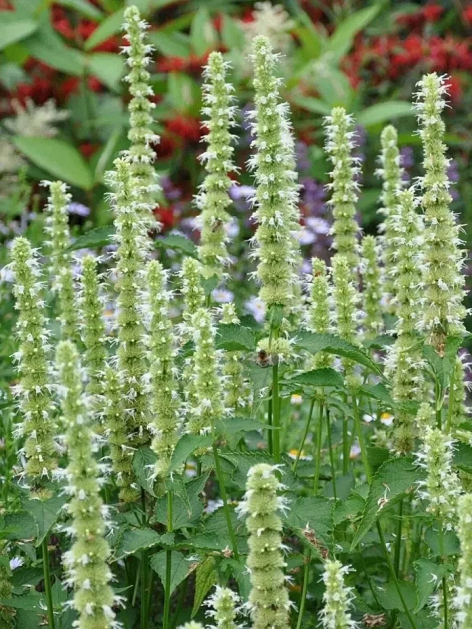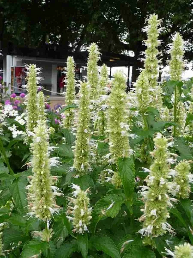 Агастахис морщинистый alabaster - это великолепное растение с белыми цветками, которое поразит вас своей изящностью и красотой. Его стебли достигают высоты до 150 см, создавая великолепный вид в вашем саду или огороде. Листья этого растения имеют зеленую окраску и добавляют свежести и жизненности вашему участку.