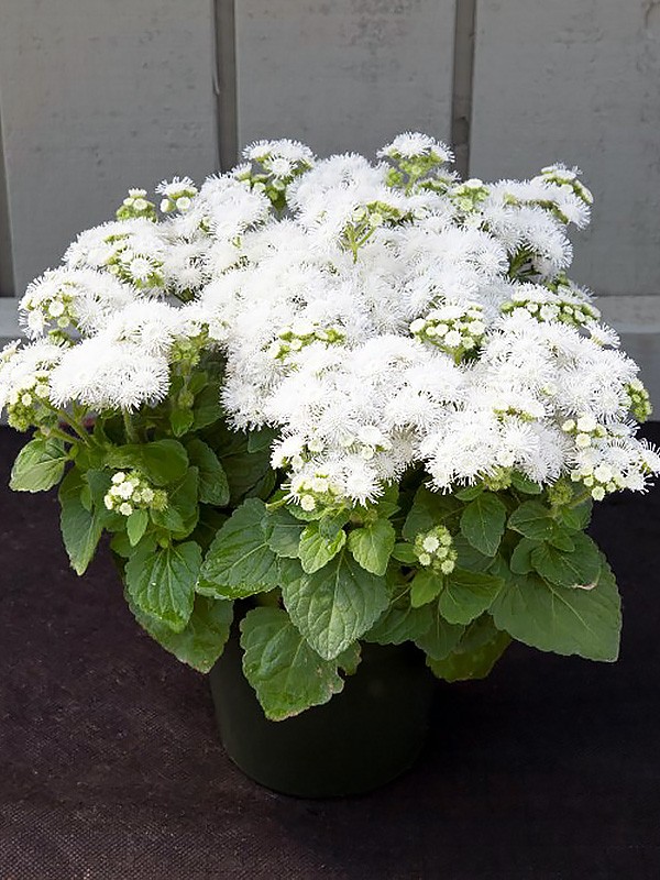 Семена агератума «Белый шар» высевают в марте — апреле на рассаду. Глубина заделки составляет 0,3-0,5 см. Семена прорастают через пару недель при температуре грунта +20 градусов. В открытый грунт рассаду высаживают по схеме 15х20 см, когда минует угроза заморозков. Агератум «Белый шар» — это однолетняя очень теплолюбивая культура, которая в высоту достигает до 55 см. Кустарник отличается шарообразной формой и обильным цветением. С июля до заморозков на растении раскрываются плотные соцветия белого окраса. Однолетник прекрасно смотрится в любом уголке сада и подходит для выращивания даже неопытным садоводам.