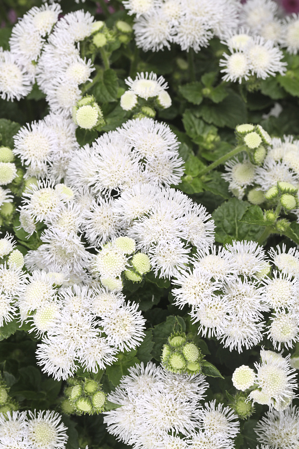 Агератум Cloud Nine White - это волшебное растение, которое принесет в ваш сад нежность и чистоту белоснежных цветков. Его стебельки излучают нежный аромат, наполняя воздух невесомым шармом и умиротворением. Высота этого растения составляет 10-15 см, что делает его идеальным для групповых посадок. Листья агератума имеют форму сердца, создавая уютный уголок в вашем саду.