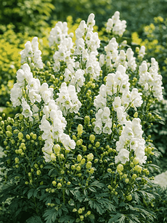 Аконит клобучковый eleonora - это удивительное растение с белыми цветками, которое поразит вас своей красотой и изяществом. Сорт eleonora отличается высотой до 70 см и прекрасно подойдет для групповых и одиночных посадок в саду. Летом его листва радует глаз зеленым оттенком, а в июне и августе цветет нежными белыми цветками.