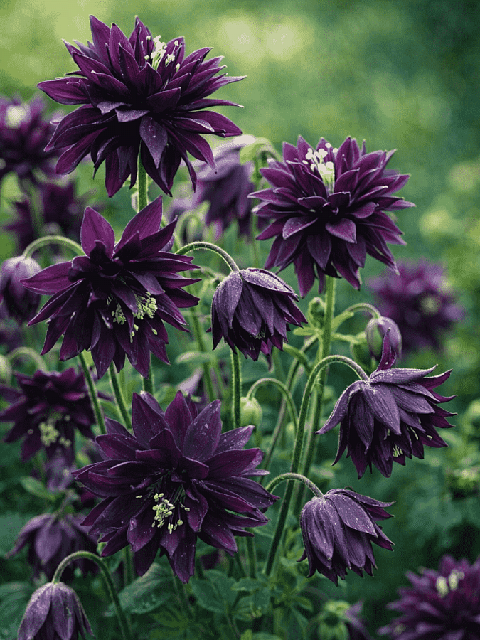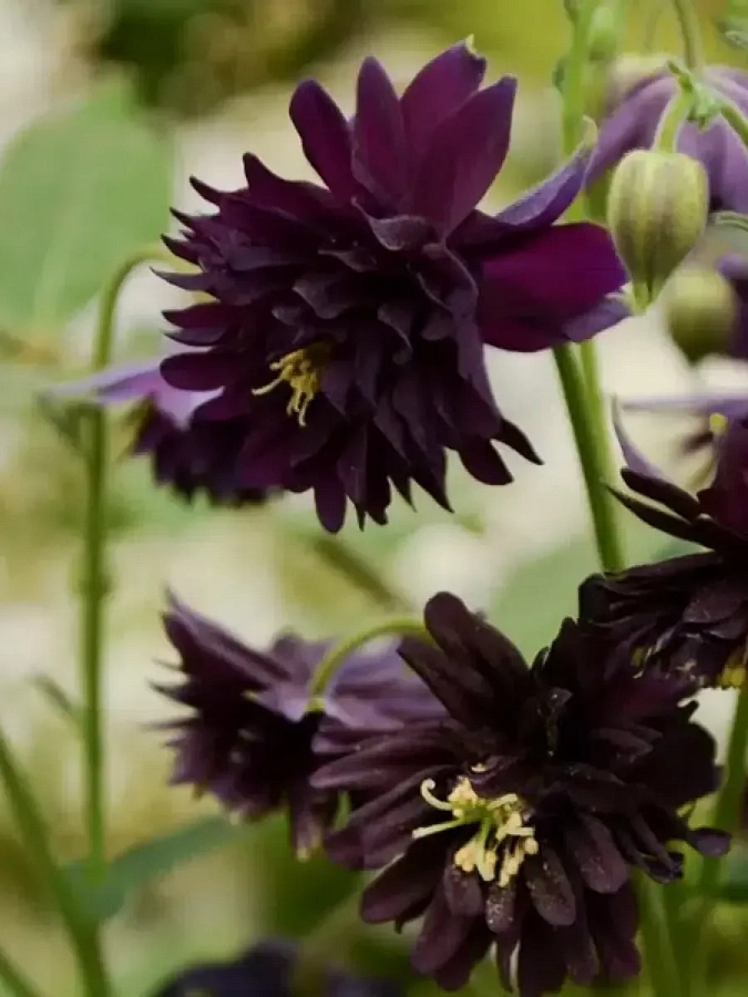 Аквилегия гибридная Макканы Барлоу Блэк - это великолепное растение с темно-синими, почти черными цветками, которые выглядят как нарядные махровые шары. Этот сорт поражает своей изысканной красотой и неповторимым очарованием. Растение достигает высоты 60-80 см, имеет прочный ствол и красивую форму листьев.