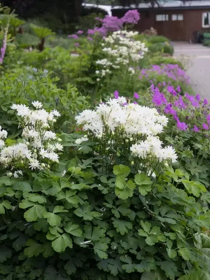 Аквилегия обыкновенная вайт барлоу - это изысканное растение с махровыми белыми цветками, которые напоминают кружево. Ее стебель достигает высоты до 60 см, что делает ее идеальным выбором для создания нежных цветочных композиций в саду. Листья аквилегии имеют интересную форму и добавляют декоративности растению.