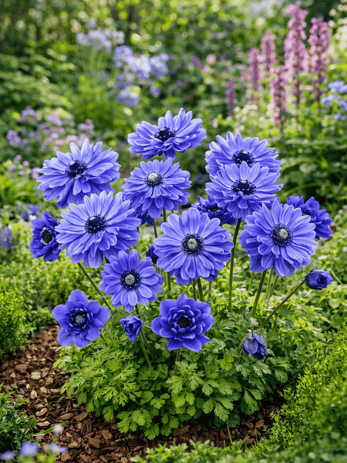 Анемона Double Lord Lieutenant - это великолепное растение, которое поразит вас своей красотой и изяществом. Его сине-голубые цветы будут радовать глаз в июне и октябре, создавая неповторимую атмосферу в вашем саду. Высота этого растения достигает до 30 см, что делает его идеальным выбором для групповых или одиночных посадок. Листья анемоны Double Lord Lieutenant имеют интересную форму и придают растению особый шарм.