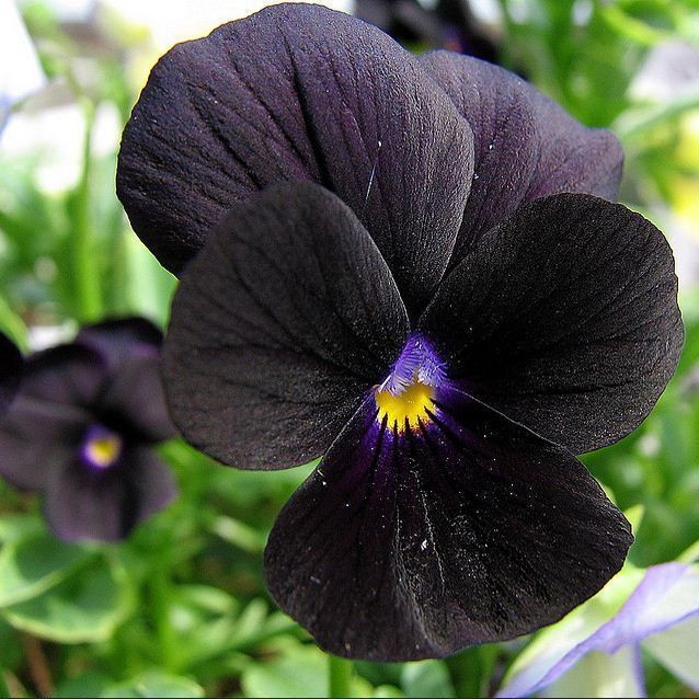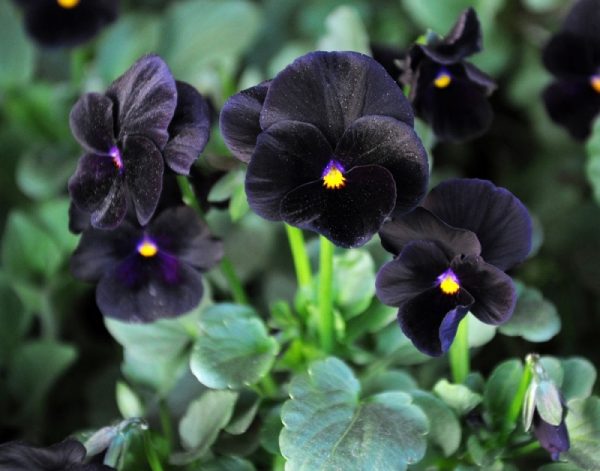 Анютины глазки черный король - это удивительное растение с чёрными цветками, которые напоминают загадочные звёзды ночного неба. Его стебель достигает высоты до 15 см, что делает его идеальным выбором для групповых посадок в саду или на клумбе. Листья этого растения имеют форму сердца, создавая неповторимый вид.
