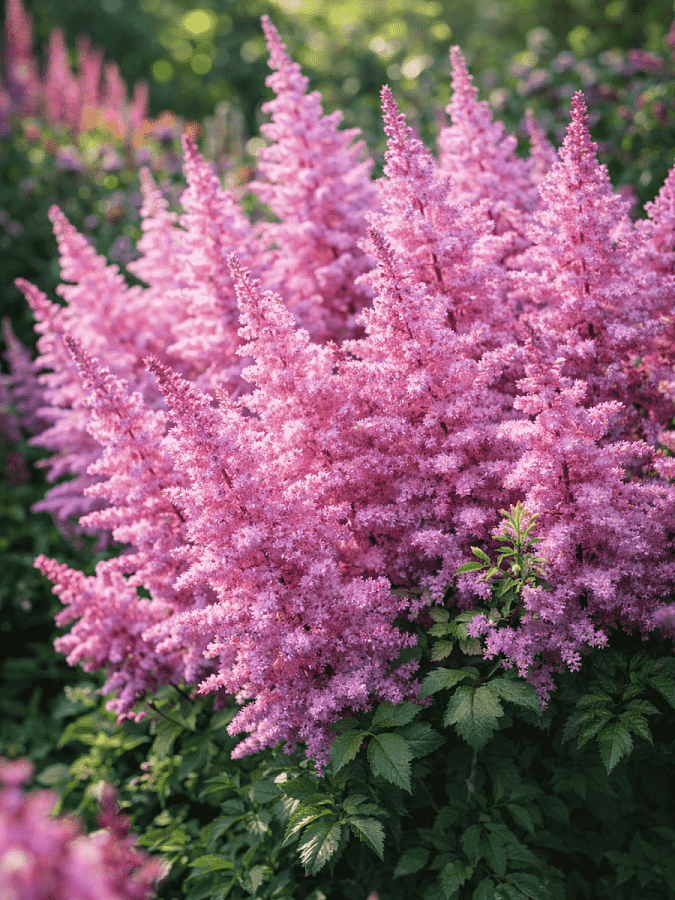 Астильба creamy pearls - это изысканное растение с фиолетовыми цветками, которое станет настоящим украшением вашего сада. Его стебли достигают высоты 50-70 см, создавая неповторимый образ. Листья астильбы имеют интересную форму и яркую зеленую окраску, что делает растение еще более привлекательным.