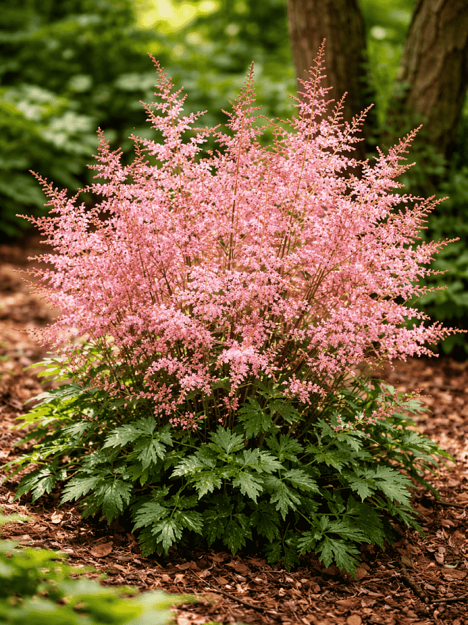 Астильба простолистная inshriach pink - это изысканное растение, которое поразит вас своей нежной красотой. Ее темно-зеленые листья и розовые цветы создадут уютный уголок в вашем саду или огороде. Этот сорт астильбы отличается компактным размером (30-40 см) и обильным цветением в июле и августе. Растение предпочитает полутень и может выращиваться как в групповых, так и в одиночных посадках.