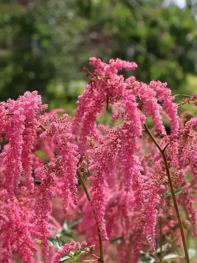 Для ухода за астильбой рекомендуется регулярный полив и опрыскивание листьев, особенно в жаркие летние дни. Растение нуждается в удобрениях для хорошего роста и обильного цветения.