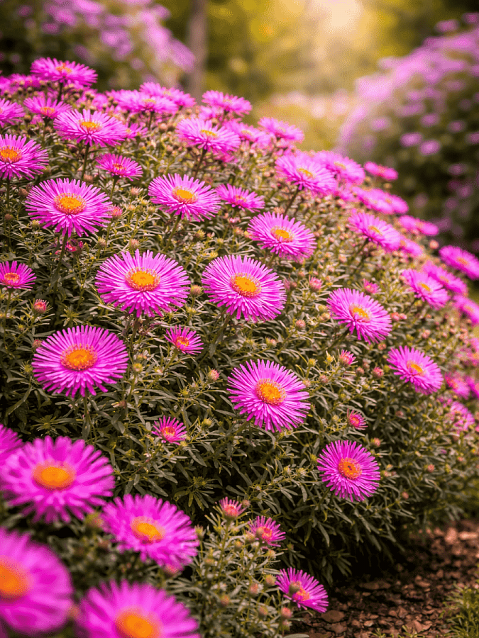 Это растение предпочитает солнечные места и не требует особого ухода. Важно обеспечить ему достаточное количество света и регулярный полив в период сухости. Астра magic pink не требует частого удобрения, но рекомендуется подкормка весной для более обильного цветения.