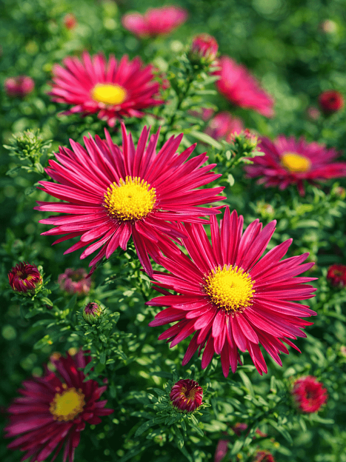 Эта астра отлично подходит для солнечных мест, поэтому выберите для нее хорошо освещенное место в саду. Она не требует сложного ухода: достаточно регулярного полива и удобрений весной. Важно помнить, что астра Royal Ruby цветет в октябре и апреле, радуя глаз своими яркими цветами.