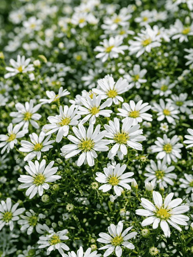 Астра вересковая - это изысканное растение семейства астровых, которое поражает своей нежной красотой и изяществом. Ее стебель прочный и прямой, достигает высоты до 70-100 см, что делает ее идеальным выбором для групповых и одиночных посадок в саду. Листья астры вересковой имеют узкую форму, создавая элегантный вид растения. Цветки белого оттенка расцветают в сентябре-октябре, придавая саду неповторимое очарование.
