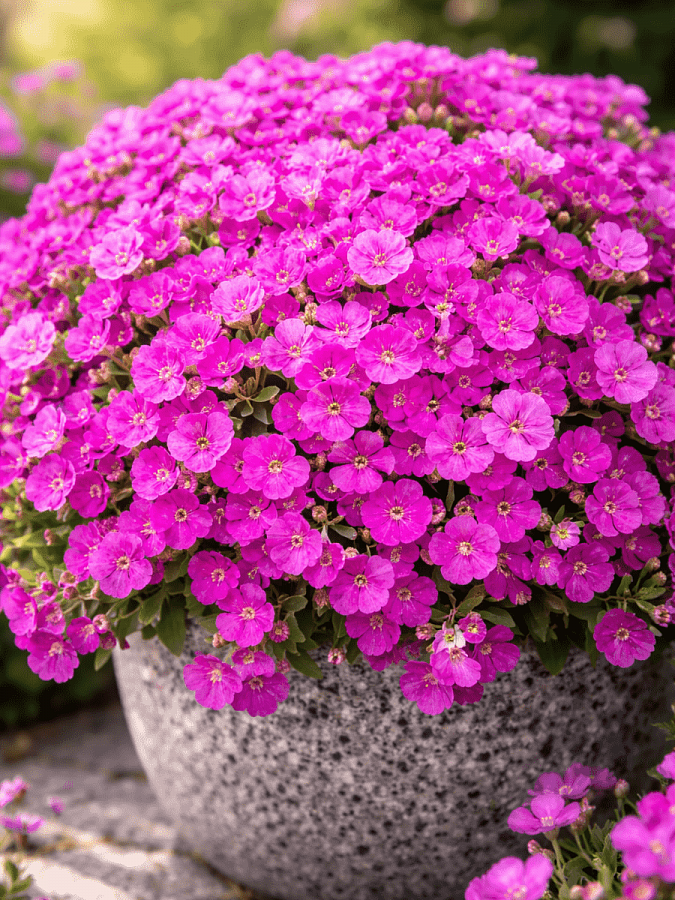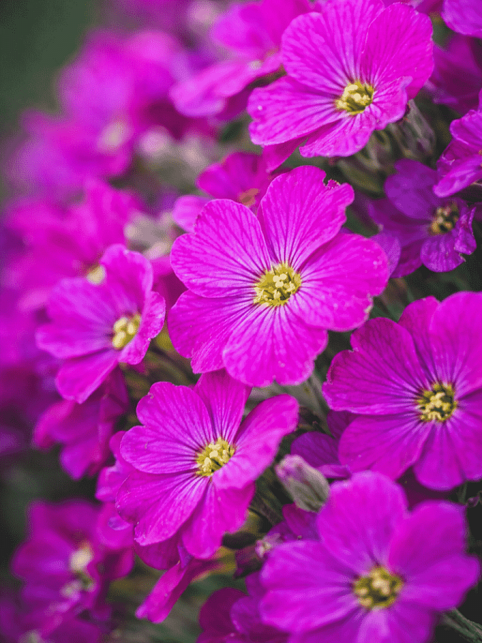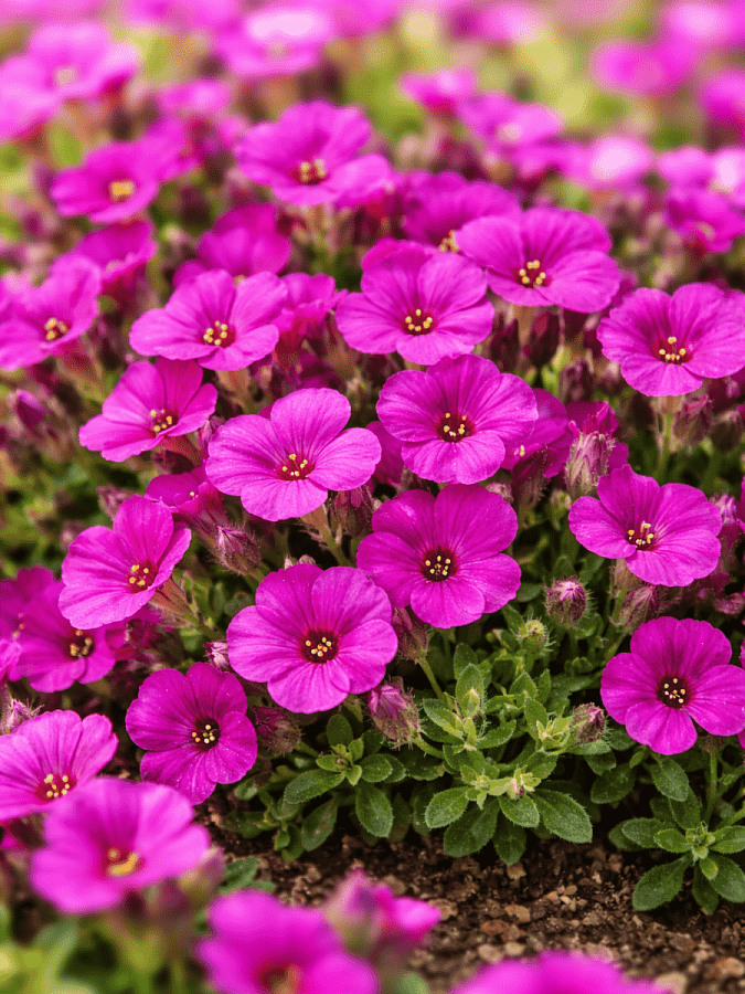 Аубриета florado neon pink - это удивительное растение с яркими розово-красными цветками, которое порадует вас своей красотой и изяществом. Его стебли достигают высоты 15-20 см, что делает его идеальным выбором для групповых и одиночных посадок в саду. Листья аубриеты имеют интересную форму и придают растению особый шарм.