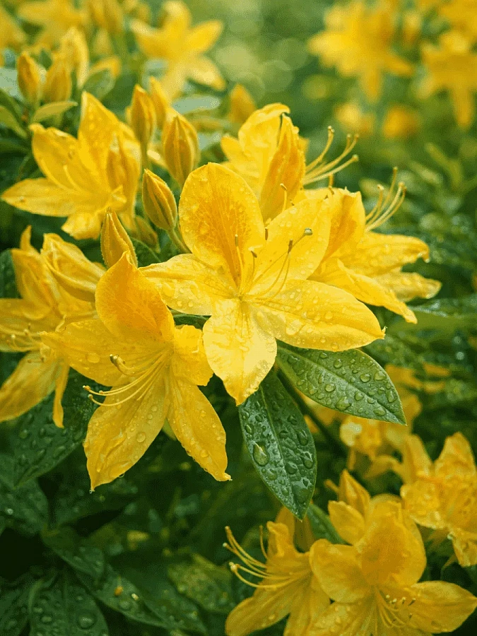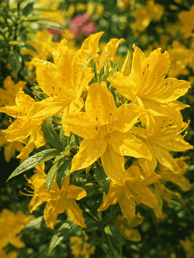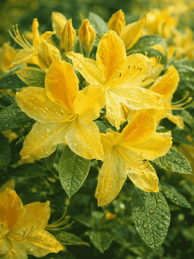 Это растение обожает солнечные места, поэтому выберите для него яркое место в саду. Цветение Goldtopas начинается в мае и продолжается до июня, радуя глаз желтыми крупными цветками диаметром до 9 см. Для поддержания красоты растения рекомендуется регулярный полив и опрыскивание, особенно в жаркие летние дни. Также не забывайте удобрять азалию для обеспечения ей необходимых питательных веществ.