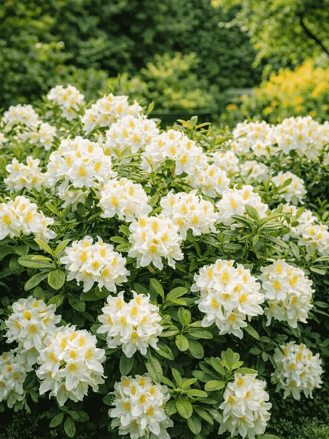 Азалия крупноцветковая Silver Slipper - это великолепное растение, которое поразит вас своей изысканной красотой. Ее кремово-желтые цветки диаметром до 9 см будут радовать вас в мае и июне, создавая неповторимую атмосферу в вашем саду. Высота растения может достигать 150-170 см, что делает его заметным акцентом в ландшафте. Листья азалии имеют элегантную форму и придают ей особый шарм.