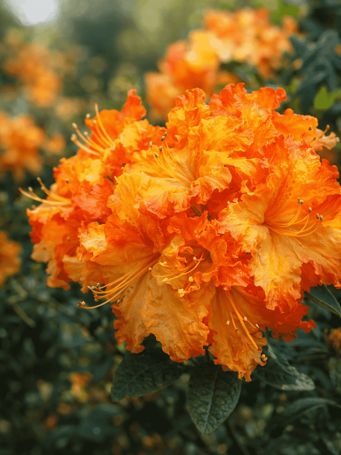 Азалия Nina-Lisa - это великолепное растение с яркими желто-оранжевыми цветками, которые радуют глаз своей красотой в мае и июне. Этот сорт азалии, созданный оригинатором к.-х. Хюбберсом, отличается высотой до 140 см, что делает его идеальным для групповых и одиночных посадок. Листья азалии Nina-Lisa имеют интересную форму и ярко-зеленый цвет, что придает растению особый шарм.