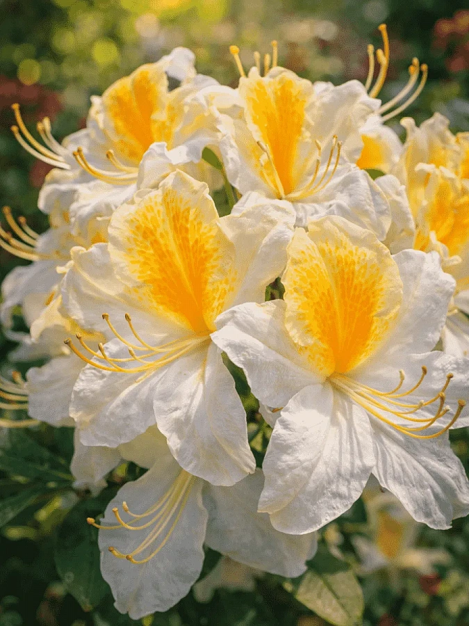 Азалия Toucan - это великолепное растение с яркими желто-белыми цветками, которые радуют глаз своей красотой в мае и июне. Это растение достигает высоты до 200 см, имеет прочный ствол и изящные листья. Азалия Toucan предпочитает солнечные места для посадки и может быть использована как для групповых, так и для одиночных посадок.