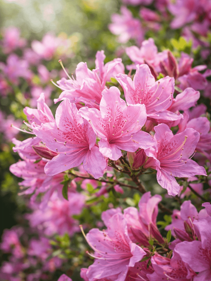 Азалия Western Lights - это великолепное растение с изысканными розовыми цветками, которые расцветают в мае и июне, принося неповторимое очарование в ваш сад. Этот сорт азалии отличается высотой до 100 см, что делает его идеальным выбором как для групповых, так и для одиночных посадок. Листья азалии Western Lights имеют ярко-зеленый оттенок, создавая красивый контраст с нежными цветками.