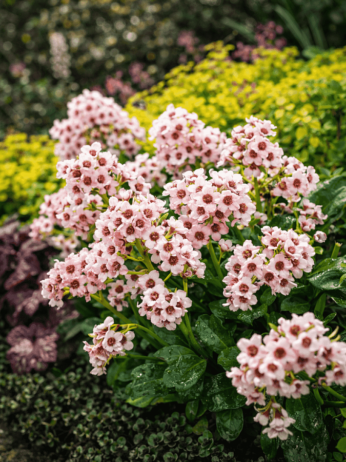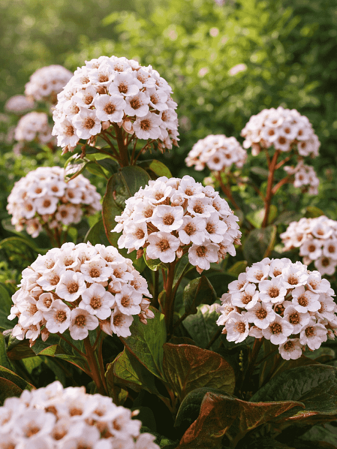Бадан гибридный dragonfly angel kiss - это удивительное растение с бело-розовыми цветками и красным глазком, которое поражает своей красотой и изяществом. Этот сорт бадана отличается высотой до 40 см, что делает его идеальным выбором для групповых и одиночных посадок в саду. Летом листва бадана имеет зеленый оттенок, создавая яркий контраст с цветками.