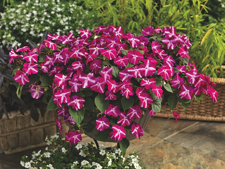 Бальзамин ампельный тумблер виолет стар - это удивительное растение с пурпурно-фиолетовыми цветками, украшенными белой звездой. Его изящные стебли достигают высоты до 30-40 см, а диаметр цветка составляет 4-5 см. Листья этого растения имеют форму сердца и создают неповторимый вид ампельной композиции.