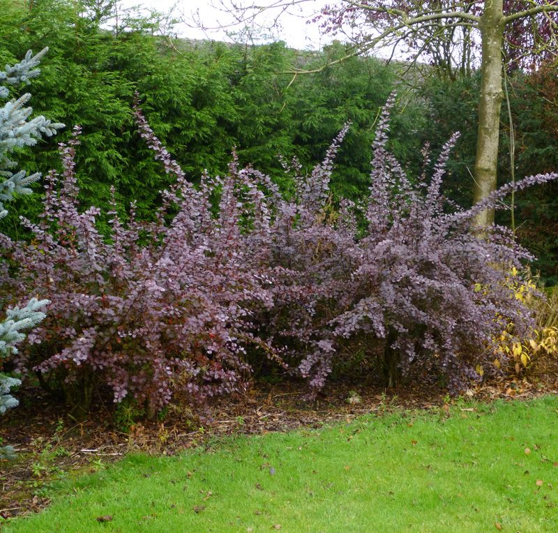 Саженцы Барбариса оттавского Суперба (Superba) – непритязательный сорт. Высаживать его можно в любые садовые почвы. Кустарник может вырастать до четырех метров. Темно-красный цвет листья сохраняют все лето, к осени алеют. Раскидистая крона станет восхитительным украшением участка, а небольшие ягоды – съедобные и кисловатые. В городских условиях кустарник чувствует себя превосходно, легко переносит полутень. Хорошо выдерживает засуху и высокие температуры. А вот застой воды крупномеру может навредить. Семена кустарника твердые, долго сохраняют свои всхожие свойства – до пяти-шести лет.