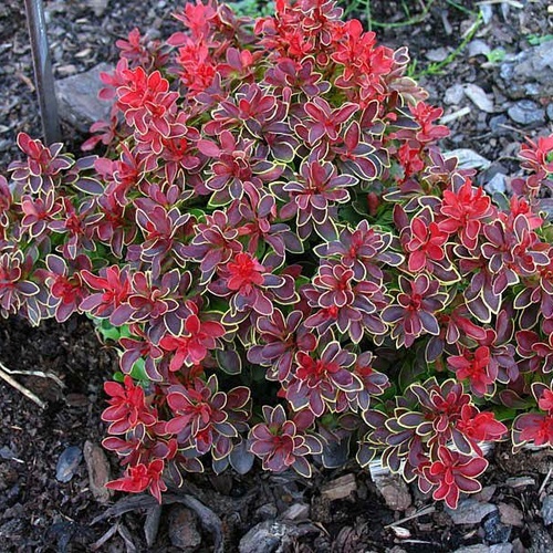 Саженцы Барбариса Тунберга Atropurpurea (Атропурпуреа) – медленнорастущий кустарник с красно-коричневыми листьями. Достигает высоты около двух метров, диаметр, как правило, превышает высоту. Листья саженцев могут быть округлыми или лопатчатыми, длина до трех сантиметров.