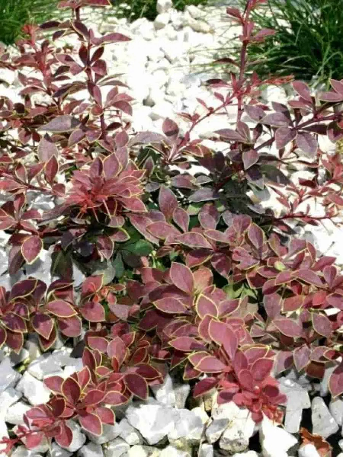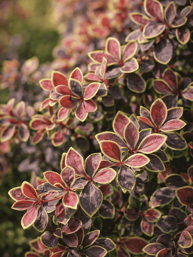 - листва – темно-красные листья с зеленоватой каймой;