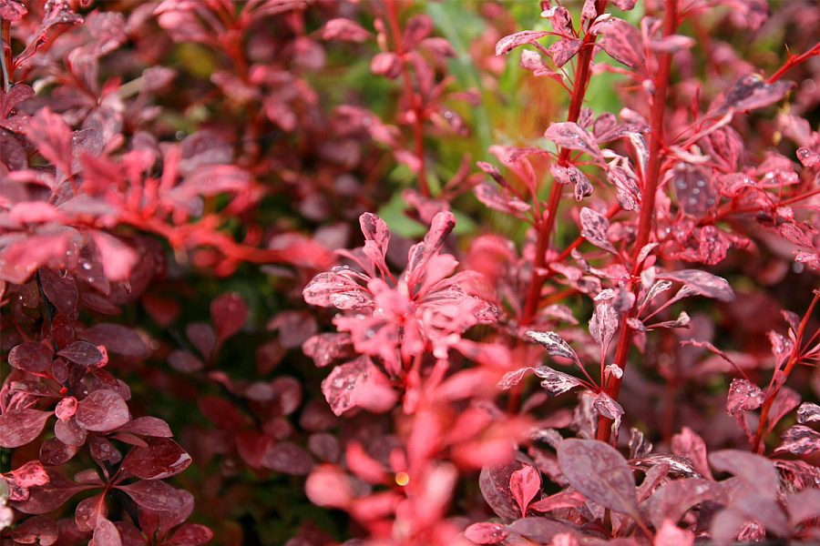 Саженцы Барбариса Тунберга Rose Glow (Роуз Глоу) поражают красивейшими пестрыми листьям, оттеняющими достаточно темный цвет остального кустарника. Осенью малиново-розовый цвет саженца сменяется на оранжевый. Крупномер Тунберга Rose Glow за год увеличивается на 15 сантиметров.