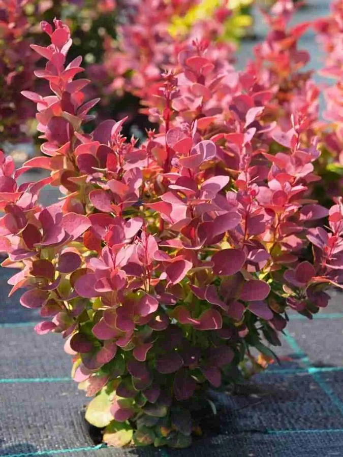Саженцы Барбариса (берберис) Тунберга Вениц (Venice) привлекают взгляд яркостью густой листвы. Розово-малиновый кустарник, высотой 150 сантиметров, будет эффектно смотреться в компании растений с изумрудно-зеленым и ярко-желтым оттенком кроны. Удлиненная форма барбариса позволяет высаживать его в качестве живого забора или в качестве фона для низкорослых растений в смешанном цветнике.