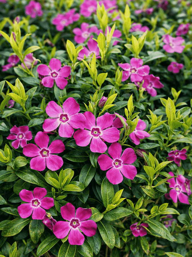 Рассада барвинка Atropurpurea (Атропурпуреа) разрастается в ширину до 60 см, а в высоту поднимается лишь на 30 см. Листочки густо покрывают веточки. Они небольшие, кожистые и имеют темно-зеленый цвет. Зацветает растение из семян барвинка Atropurpurea в мае. На протяжении месяца кустарник усеян фиолетово-пурпурными цветочками, состоящие из пяти лепестков. Иногда растение цветет повторно. Достоинства рассады барвинка Atropurpurea: может расти в полной тени и на солнце, только тогда нужен обильный полив, хорошо переносит морозы, не нуждается в укрытии. Больше всего подходит дренированная и увлажненная почва.