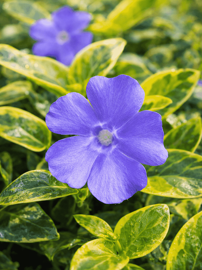 Барвинок малый blue and gold - это удивительное растение с нежно-синими цветками и желтовато-зеленой листвой, которое поражает своей красотой. Этот цветок многолетний, достигает высоты до 15-20 см и отличается травянистым стеблем. Листья барвинка малого имеют интересную форму и создают уникальный акцент в саду или на клумбе.