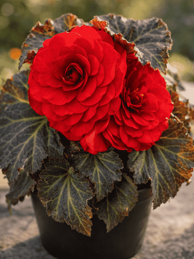 Бегония клубневая mocca scarlet - это удивительное растение, которое поразит вас своей красотой и изысканностью. Ее ствол нежный, листья шоколадно-кофейного оттенка с бронзовым отливом создают неповторимый вид. Цветки алые, размером до 10 см, расцветают в июне и сентябре, придавая саду неповторимый шарм.