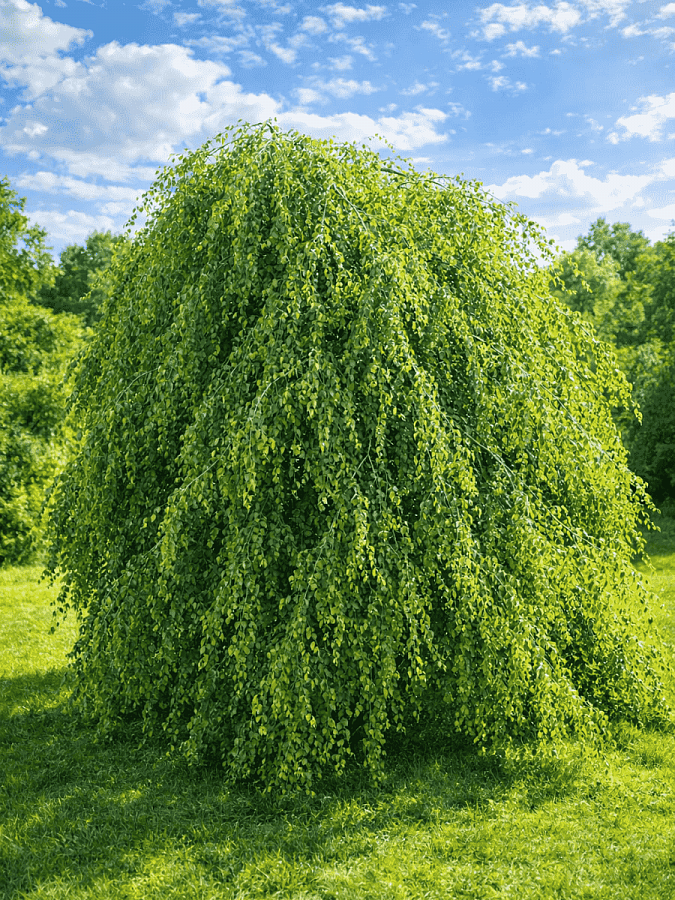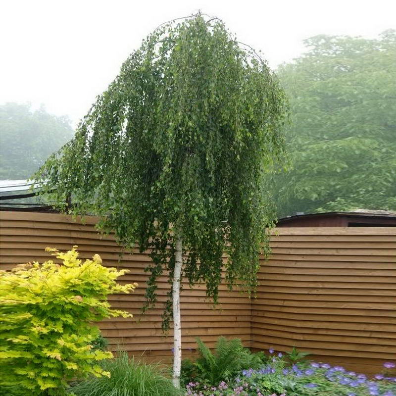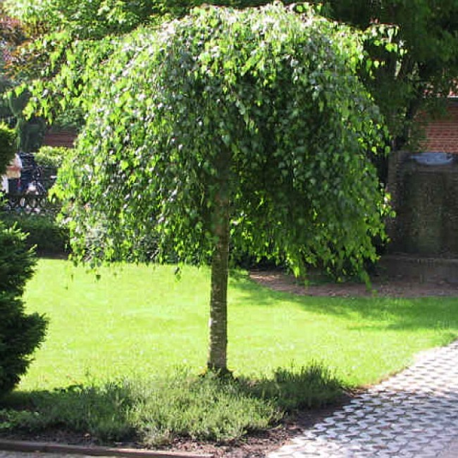 Саженцы берёзы повислой Youngii — аккуратное листопадное деревце, вырастающее не более 4 метров в длину. Клейкие листья имеют заострённую треугольную форму; ветви, склоняющиеся к земле, придают берёзе сходство с зонтиком. В середине весны начинается цветение: появляются первые красивые соцветия — серёжки и медоносны. Молодые побеги имеют нехарактерную для берёз коричневую окраску ствола.