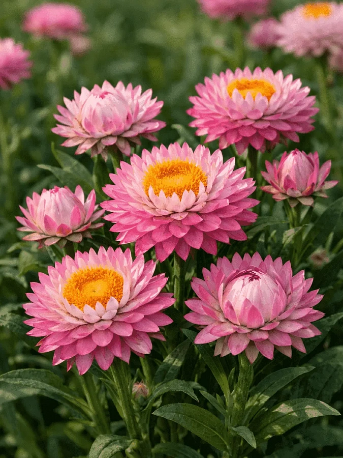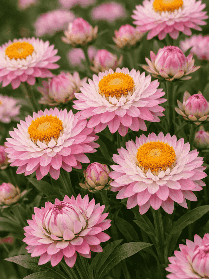 Брактеанта crispy pink - это удивительное растение с нежными розовыми цветками, которые будут радовать ваш взгляд в мае и сентябре. Его зеленая листва идеально дополняет яркость цветков, создавая гармоничный образ. Высота этого растения достигает 25-30 см, а диаметр цветка может быть до 6.5 см. Благодаря своей морозостойкости до зоны 8a, брактеанта crispy pink прекрасно подойдет для выращивания в центральной Голландии, Бельгии, Франции и Англии.