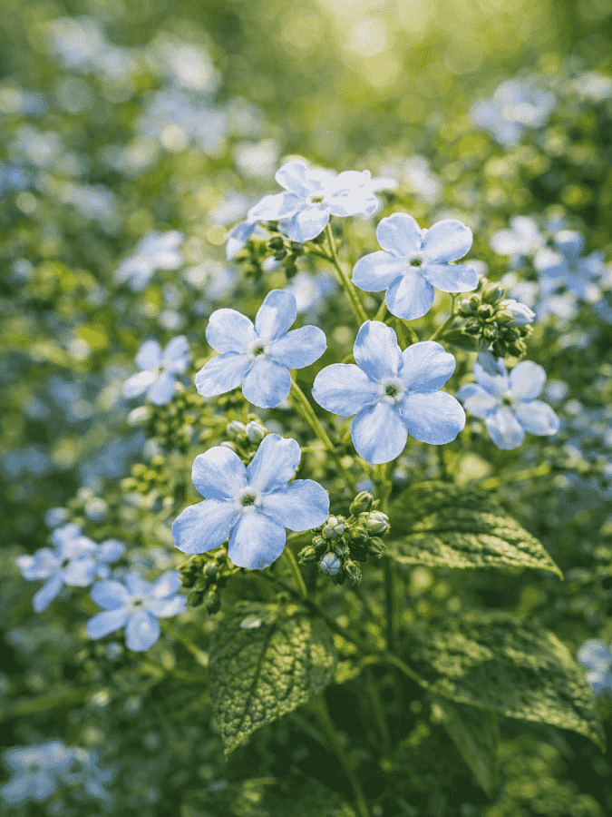 Это растение предпочитает полутень, поэтому выберите место с небольшим количеством солнечного света для его посадки. Бруннера Jennifer не требует частого полива, но регулярное опрыскивание поможет сохранить ее здоровье и красоту. Для обильного цветения и здорового роста можно использовать удобрения весной и летом.