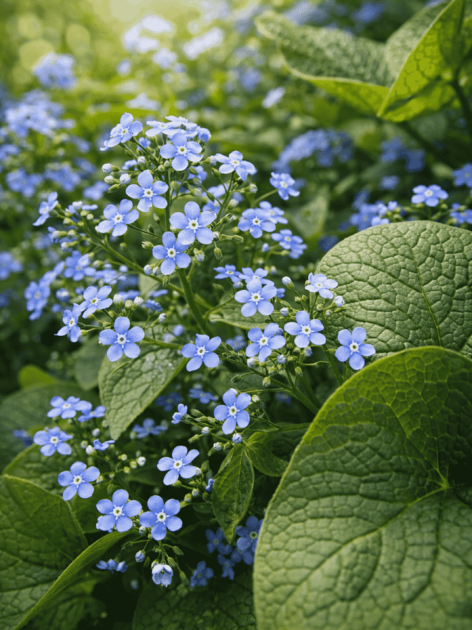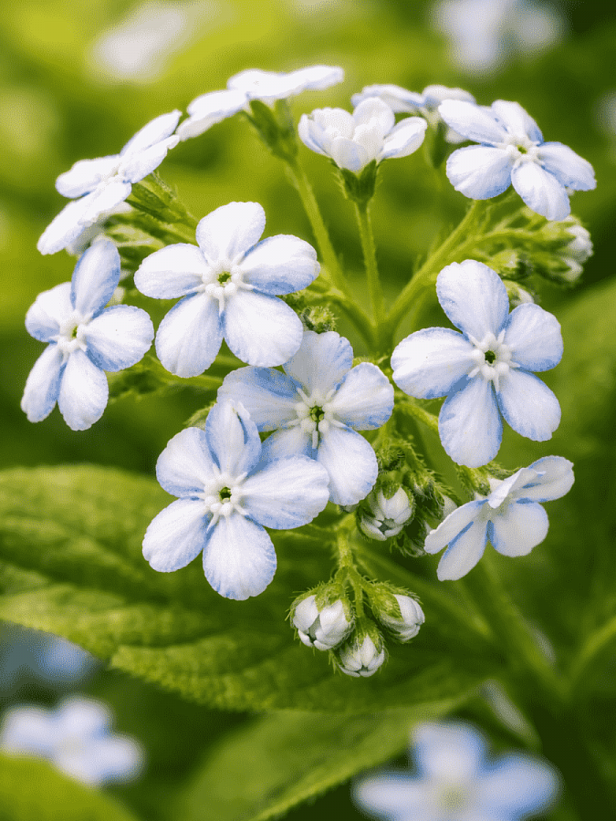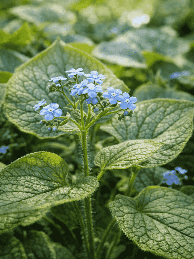 Бруннера крупнолистная Jennifer - это великолепное растение с изящными, крупными листьями и нежными цветками, которые расцветают в мае-июне. Ее высота достигает до 45 см, что делает ее идеальным выбором для групповых или одиночных посадок в саду. Листья бруннеры имеют зеленую окраску летом, создавая уютный уголок природы прямо у вас дома.