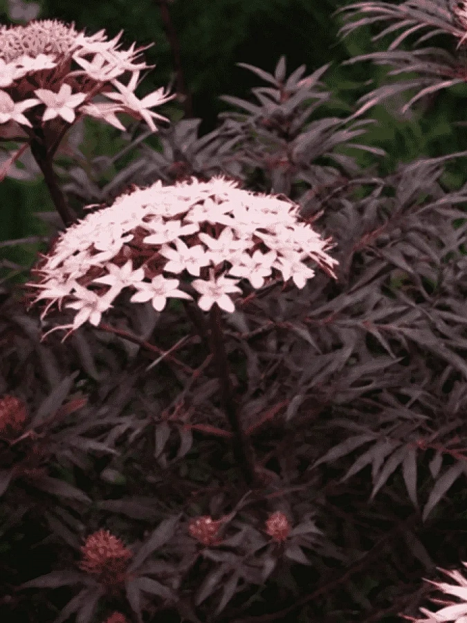 Саженцы бузины Блэк Бьюти (Black Beauty) вырастают пышным кустом около 2,5 метра в высоту. Листва крупная и имеет темно-бордовый тон. Цветет светлыми цветочками, которые собраны в крупные кисти. Цветение происходит в июне-июле. Растение можно посадить на солнечных и теневых местах участка. Очень хорошо реагирует на регулярный, умеренный полив. Преимущества бузины Блэк Бьюти: