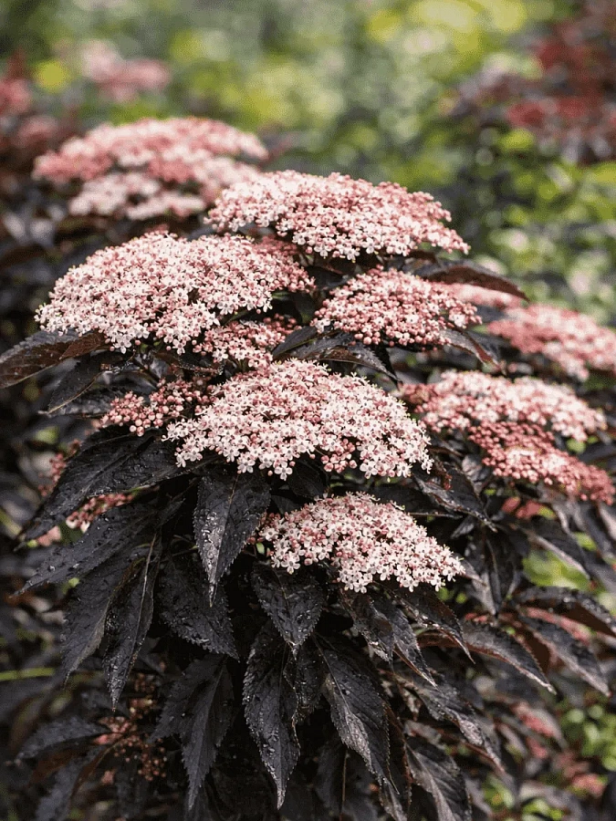 Это растение цветет в мае и июне бело-розовыми цветками, придавая вашему саду нежность и очарование. Бузина черная Black Tower не требует особого ухода: она предпочитает любые типы почв и хорошо переносит зимние морозы до -29°C. Растение предпочитает солнечные места для посадки, но также может расти в полутени.