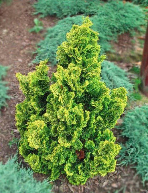 Саженцы Кипарисовика тупого Аврора (Aurora) представляет собой небольшое компактное конусообразное хвойное дерево, высота которого не превышает 60 сантиметров. Очень необычный сорт кипарисовика удивителен своими вьющимися веточками, которые напоминают морские кораллы. Хвоя густая, чешуйчатая, изумрудно-салатового оттенка.