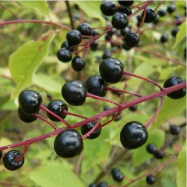 Саженцы черемухи кистевой Мавра относятся к самоплодным сортам и не нуждаются в опылении для получения урожая. Это дерево с широкой кроной, достигающее 7 м в высоту. Цветы собраны в кисти. Одна ягода весит примерно 0.7 г, по форме округлая. Кожица после полноценного созревания полностью чернеет. Мякоть ягод желто-зеленая с прожилками бордового цвета, она сочная и мягкая с красным соком.