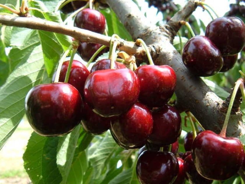Саженцы черешни Юлия высокорослые деревья,высота взрослого дерева 7-8 м. Плоды вызревают в июне-июле, очень привлекательны на вид и вкусны, некрупные (5-6 г). Ягодки плотные (группы бигарро), сладкие с нежной кремовой окраской и розовыми растушеванными боками, по 2-3 в соцветии. Нарастание урожайности крупномера начинается на 5-6 год и идет медленно. В зрелом возрасте возможен урожай до 110 кг/дер. Требует подсадки донорских сортов с цветением в тот же период для перекрестного опыления. Актив сорта: