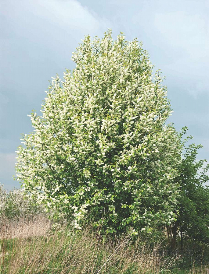 Саженцы Черемухи обыкновенной сорта Альберти (Albertii, Prunus padus) выведена во Франции, названа в честь директора ботанического сада. Это листопадное дерево, высота которого достигает 800 сантиметров. Его крона ширококоническая, густая.