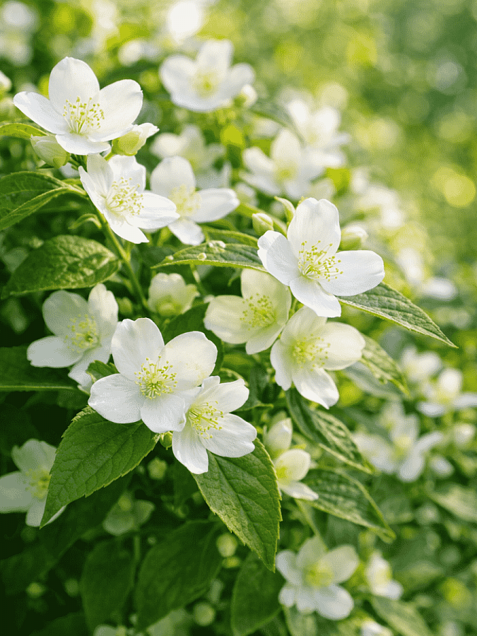 Чубушник венечный coronaries - это изысканное растение с белыми ароматными цветками, которые расцветают в мае-июне, наполняя сад нежным ароматом. Этот кустарник может достигать высоты до 3 метров, создавая великолепные живые изгороди или служа как украшение одиночных посадок. Летом его листва радует глаз зеленым оттенком, придавая саду свежий и яркий вид.