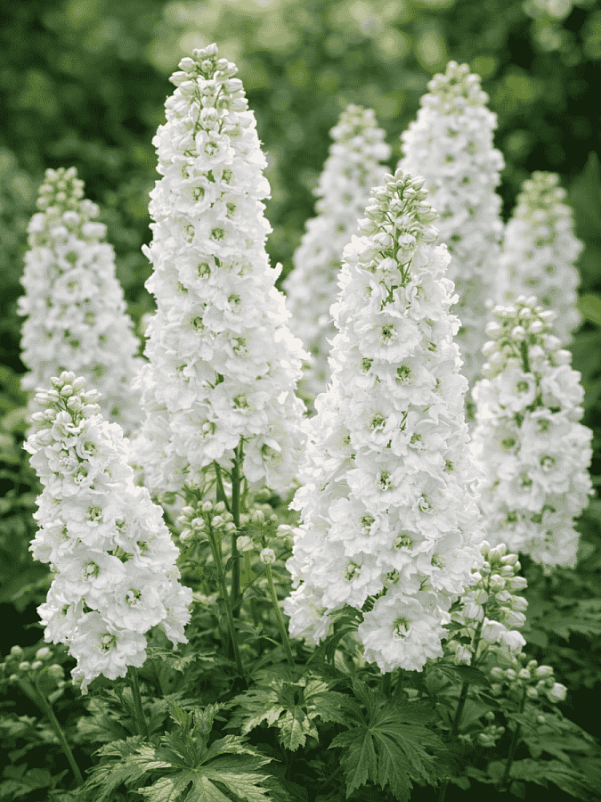 Этот сорт цветет в июне и августе, радуя глаз своими нежными белыми цветками диаметром 4-5 см. Дельфиниум m. f. white предпочитает солнечные места и заслуженно считается светолюбивым растением. Для его процветания необходимо обеспечить регулярный полив и удобрения.