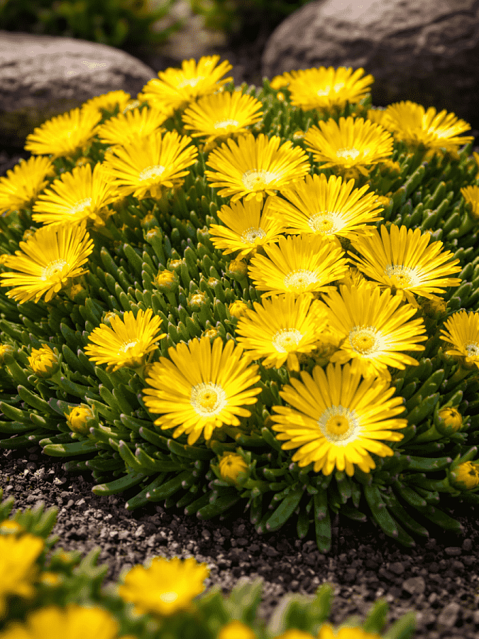 Делосперма купера ice cream yellow - это настоящий солнечный медовый десерт для вашего сада! Это растение поразит вас своей желтой окраской цветков, которые расцветают в июне и августе, создавая яркий акцент на фоне зелени. Высота этого растения не превышает 20 см, что делает его идеальным выбором для групповых или одиночных посадок.