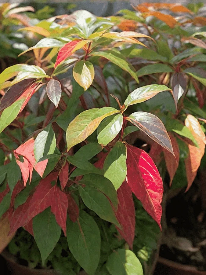 Летняя окраска листвы : зеленая, бордовая