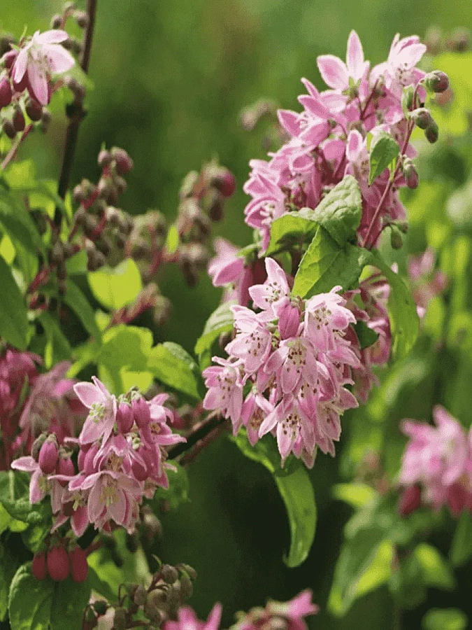 Этот сорт дейции радует глаз своими розовыми цветками, которые расцветают в июне и июле. Диаметр цветка составляет 3-3,5 см, что делает его по-настоящему великолепным. Растение отличается высокой морозостойкостью (зона 6a), что позволяет выращивать его даже в условиях восточной Польши или центральной Швеции.