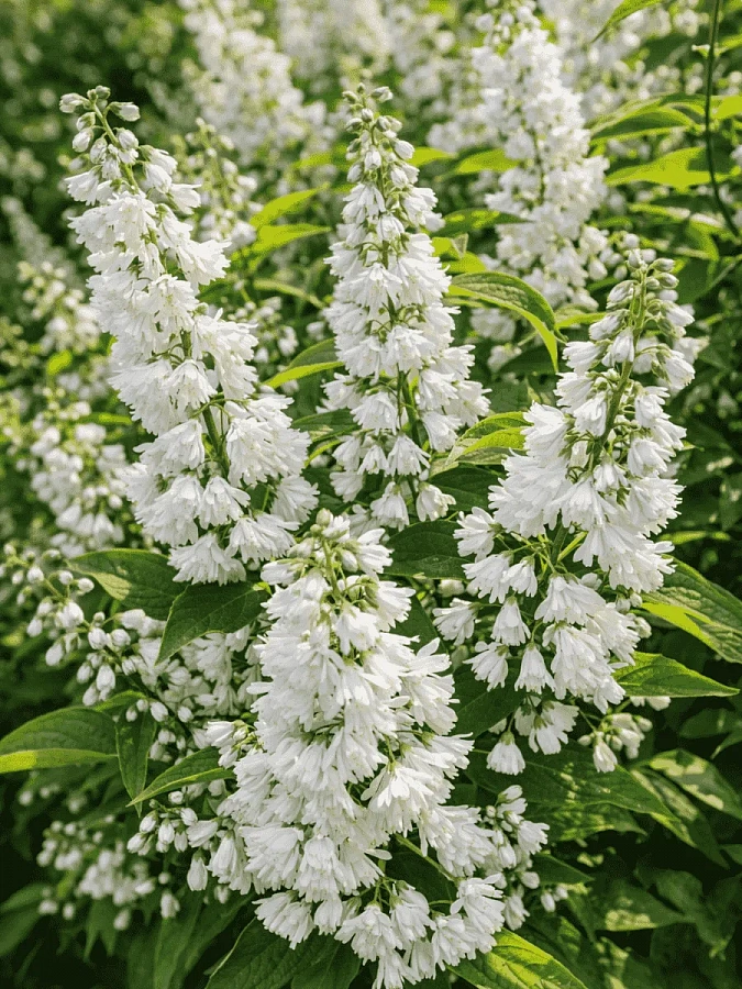 - легко адаптируется к изменениям климата. Крупномеры абсолютно не требовательны к составу почвы, но плохо переносят засухи. Поэтому посадку лучше осуществлять в тенистых участках сада, где длительно сохраняется влажность грунта. Дейция шершавая Прайд оф Рочестер цветет изящными белоснежными соцветиями, состоящими из нескольких некрупных махровых цветочков.