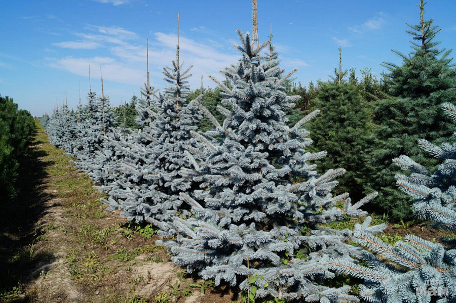 Саженцы ели голубой Хупси (Hoopsii) выделяются глубокой голубизной хвои и обладают массой поклонников среди садоводов благодаря своей декоративности. Особенно эффектно смотрятся крупные сиреневые шишки на фоне дымчатого облака широких ветвей. Взрослый крупномер достигает 15 м. Хвоя короткая, жесткая и сохраняет синеватый оттенок круглый год. Ель голубая Хупси идеально подходит для высадки на участке, как новогоднее дерево.