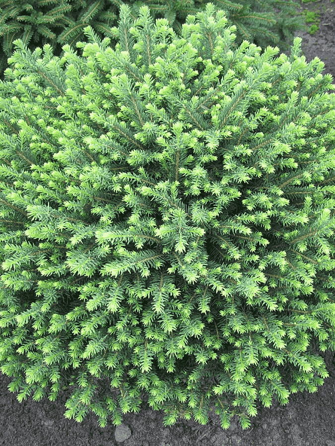 Саженцы ели Сербской Карел (Karel) невысокие кустарники, напоминающие зеленый хвойный клубок, любимый сорт садоводов за декоративность и компактность. Пушистая крона сформирована из раскидистых скелетных ветвей с нежно-зелеными хвоинками, расположенными в 2 ряда. Высота крупномера не больше 60-80 см, диаметр достигает 1м. Годовой прирост медленный, всего 3-5 см.