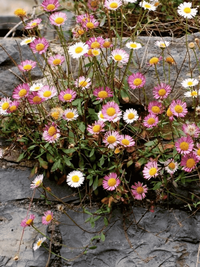 Эригерон карвинского bluetenmeer - это волшебное растение, которое привнесет неповторимую атмосферу в ваш сад. Его стебель прочный и изящный, достигает высоты до 60-80 см, украшенный нежными цветками розового цвета с ярким желтым центром. Листья эригерона блестящие, зеленые, создают гармоничный контраст с цветами.