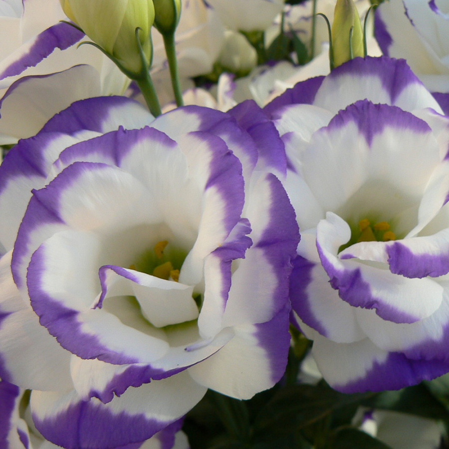 Эустома Супер Мэджик Капри Блю Пикоти - это настоящее волшебство для вашего сада! Это растение поразит вас своей красотой и изяществом. Сорт super magic capri blue picotee отличается высотой 70-90 см и цветами фиолетово-белого оттенка, которые будут радовать вас в течение 2-4 недель.